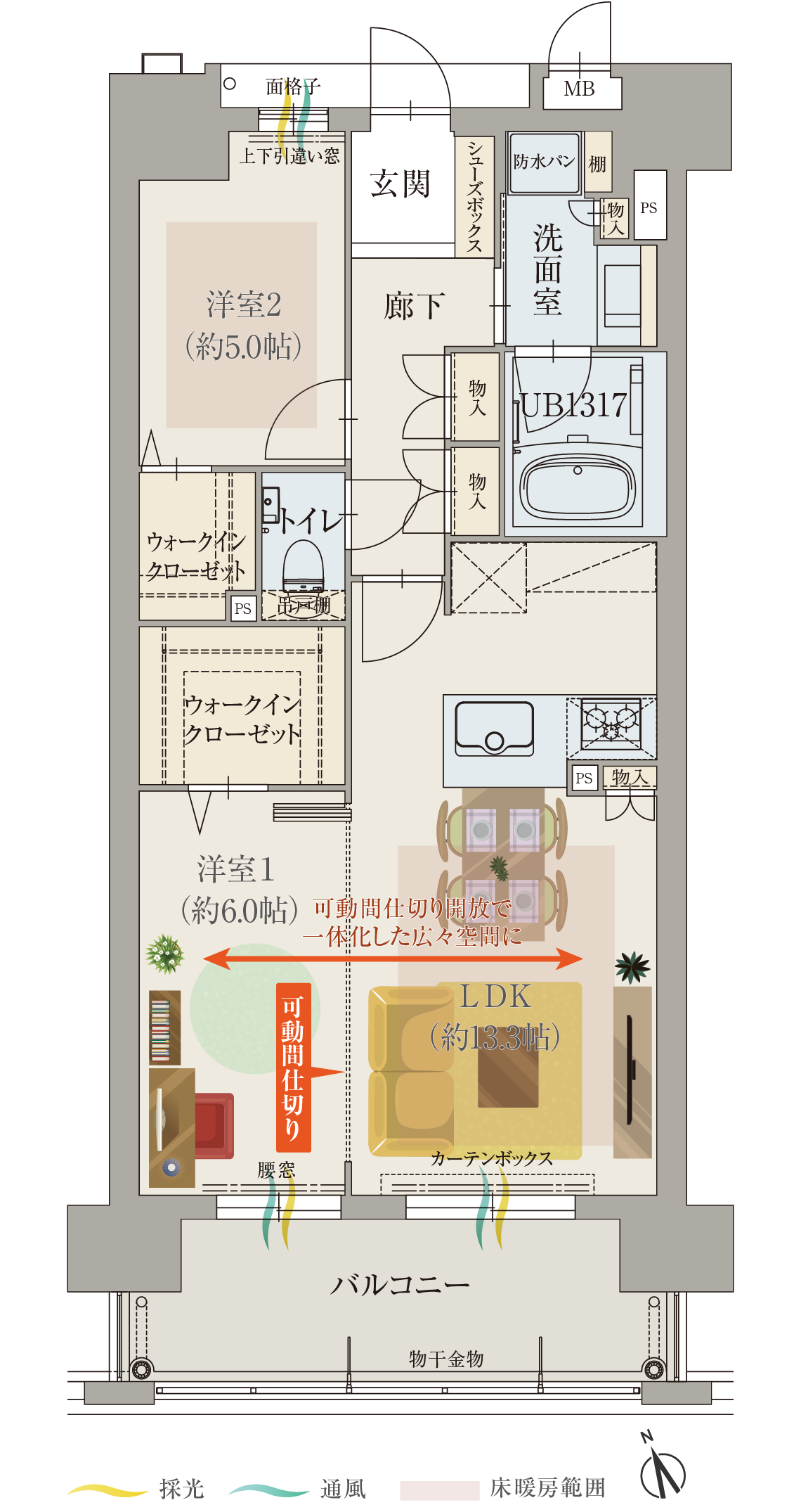 - ※図面上で表現している床暖房の範囲は、実際の施工範囲とは多少異なる場合があります。