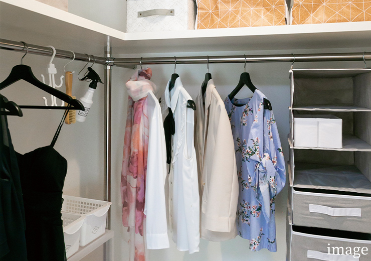 衣類やバックなどが収納できるウォークインクローゼット。