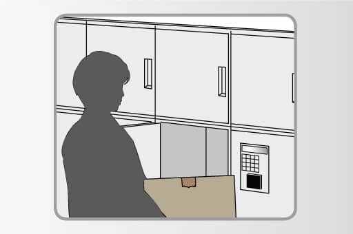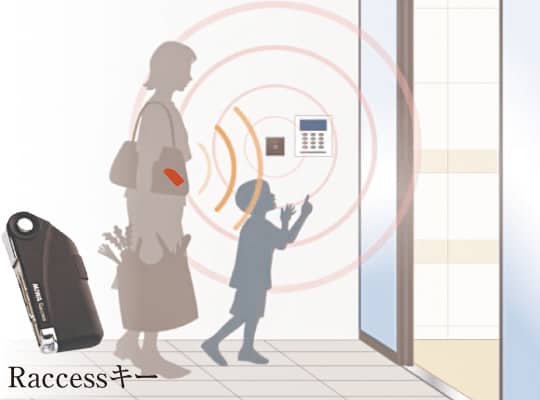 ハンズフリーRaccessキーを身につけて、リーダーに手をかざすと扉が自動的に開くので、スムーズな受け取りが可能です。