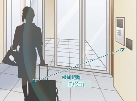 鍵をカバンやポケットに入れたまま、ハンズフリーでエントランス・サブエントランスのドアを解錠できます。