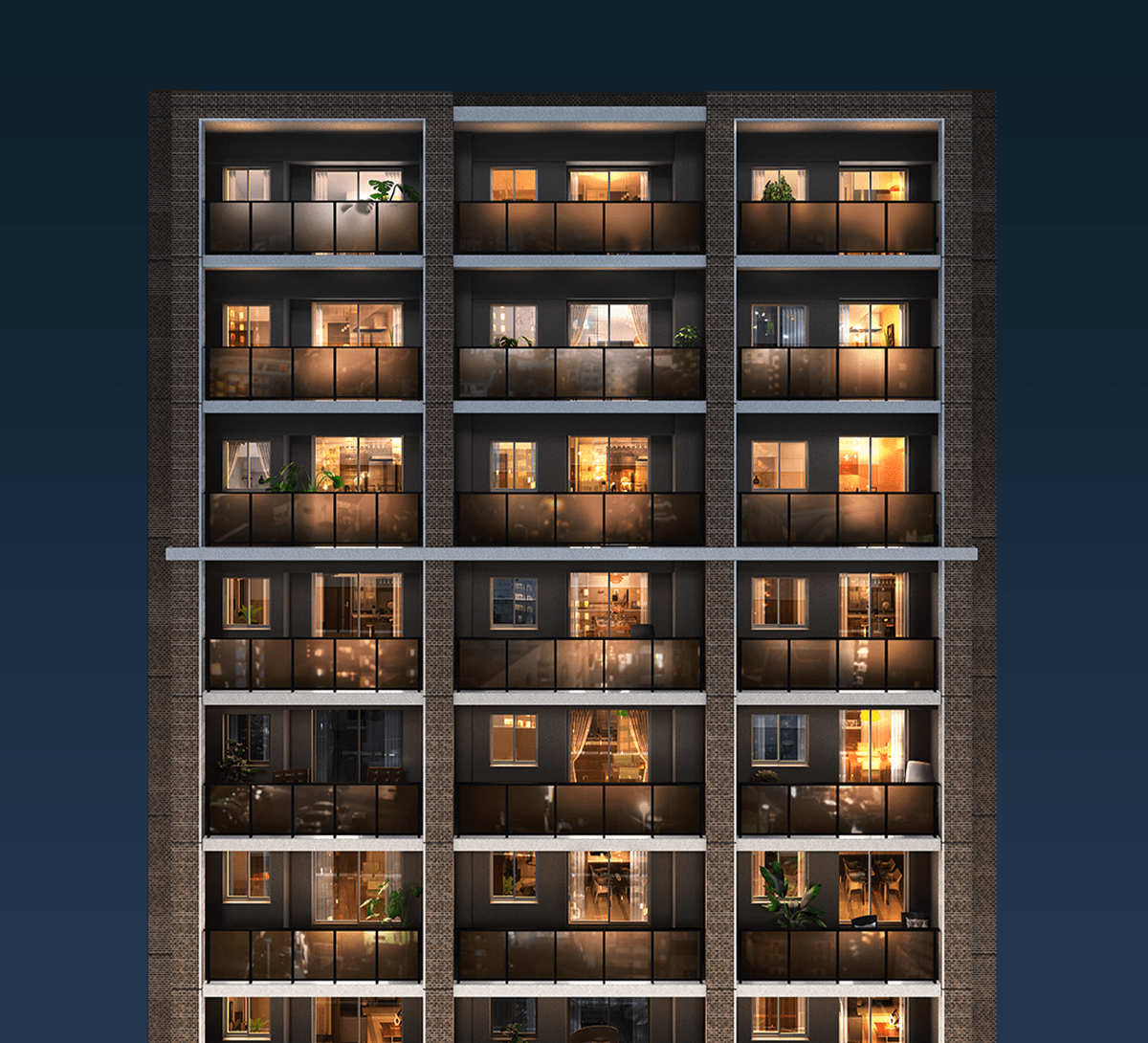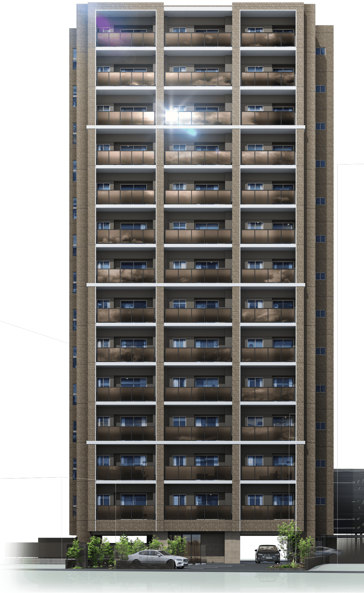 伸びやかなラインを空へと描く、1フロア3邸のスタイリッシュなフォルム。