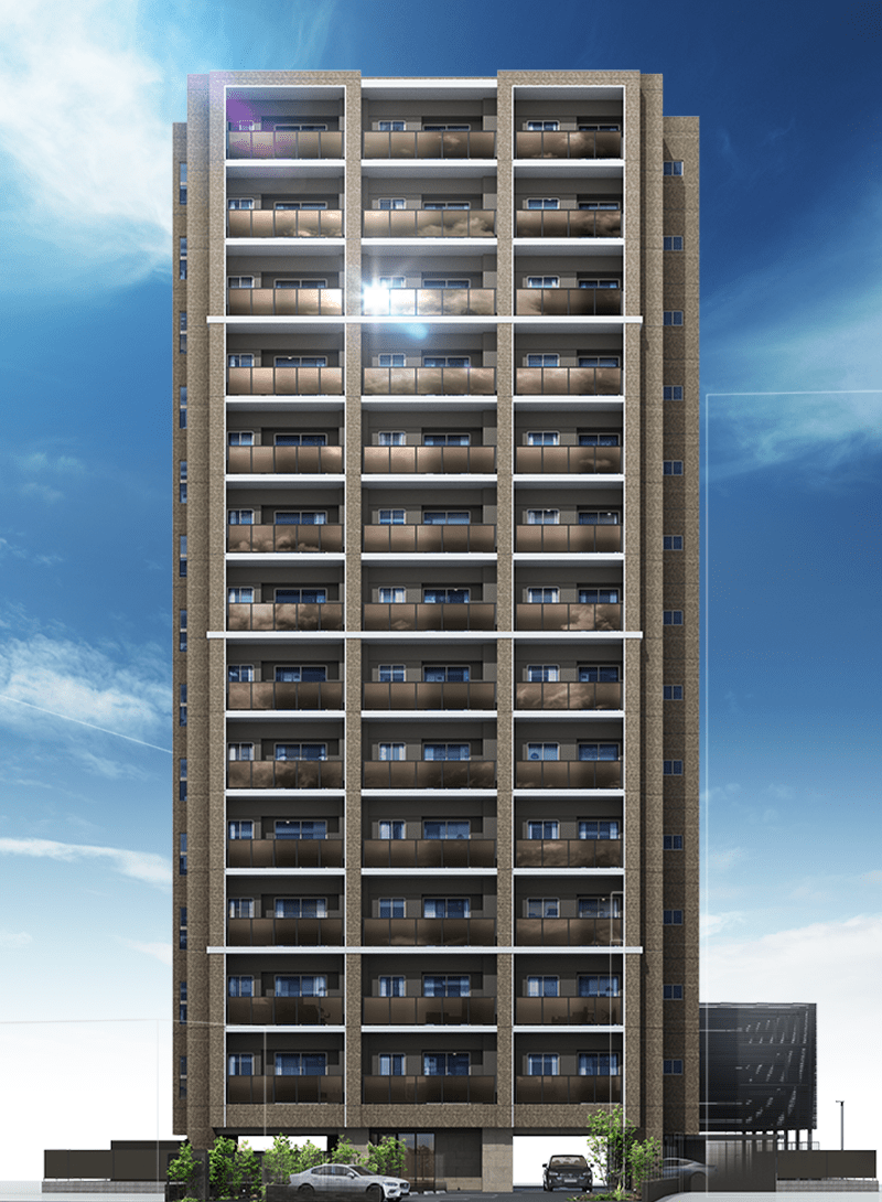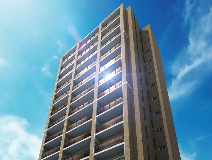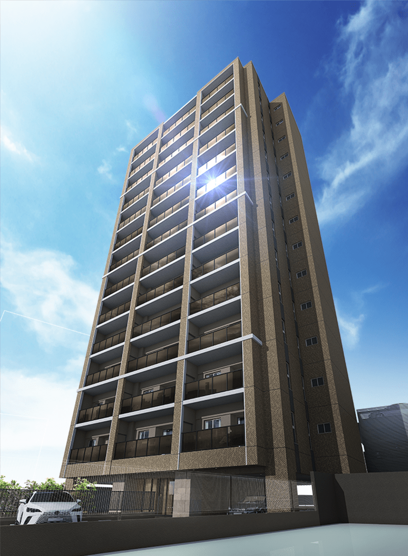 - ※掲載の完成予想図は、設計図書を基に描き起こしたものに14階相当の眺望写真(2025年5月撮影)を合成したもので、実際とは多少異なる場合があります。