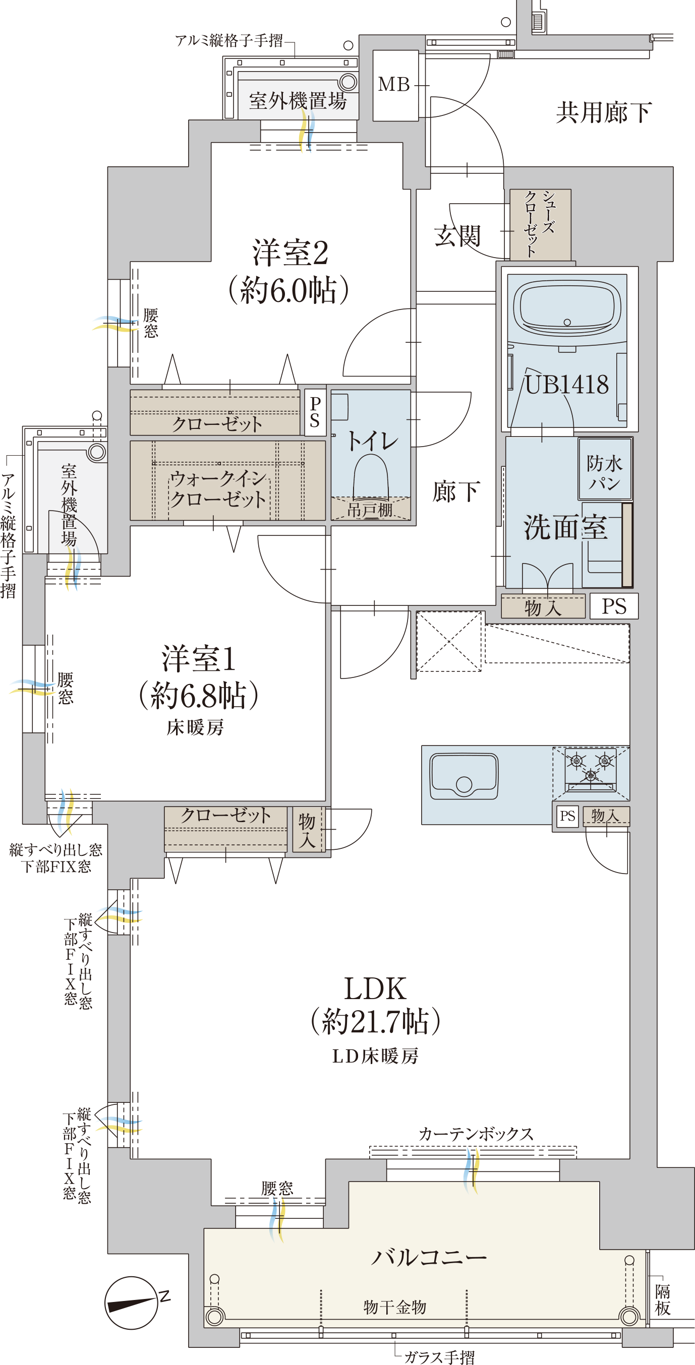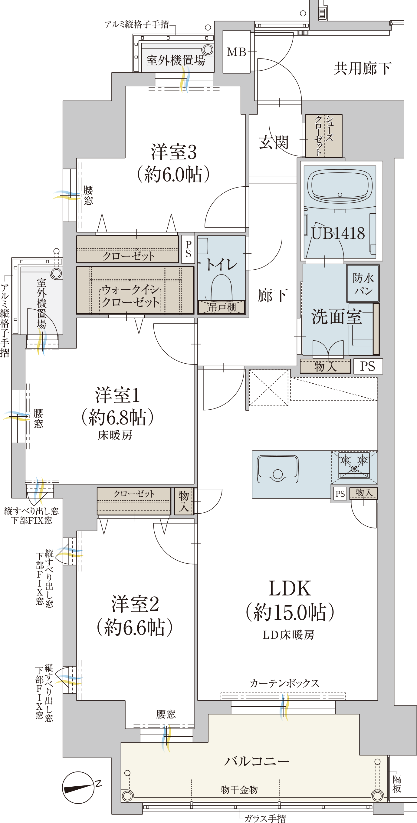 バルコニー面積 / 9.13m²(2.76坪) 室外機置場面積 / 2.70m²(0.81坪) 合計面積 / 90.72m²(27.43坪) バルコニー面積 / 9.13m²(2.76坪) 室外機置場面積 / 2.70m²(0.81坪) 合計面積 / 90.72m²(27.43坪)