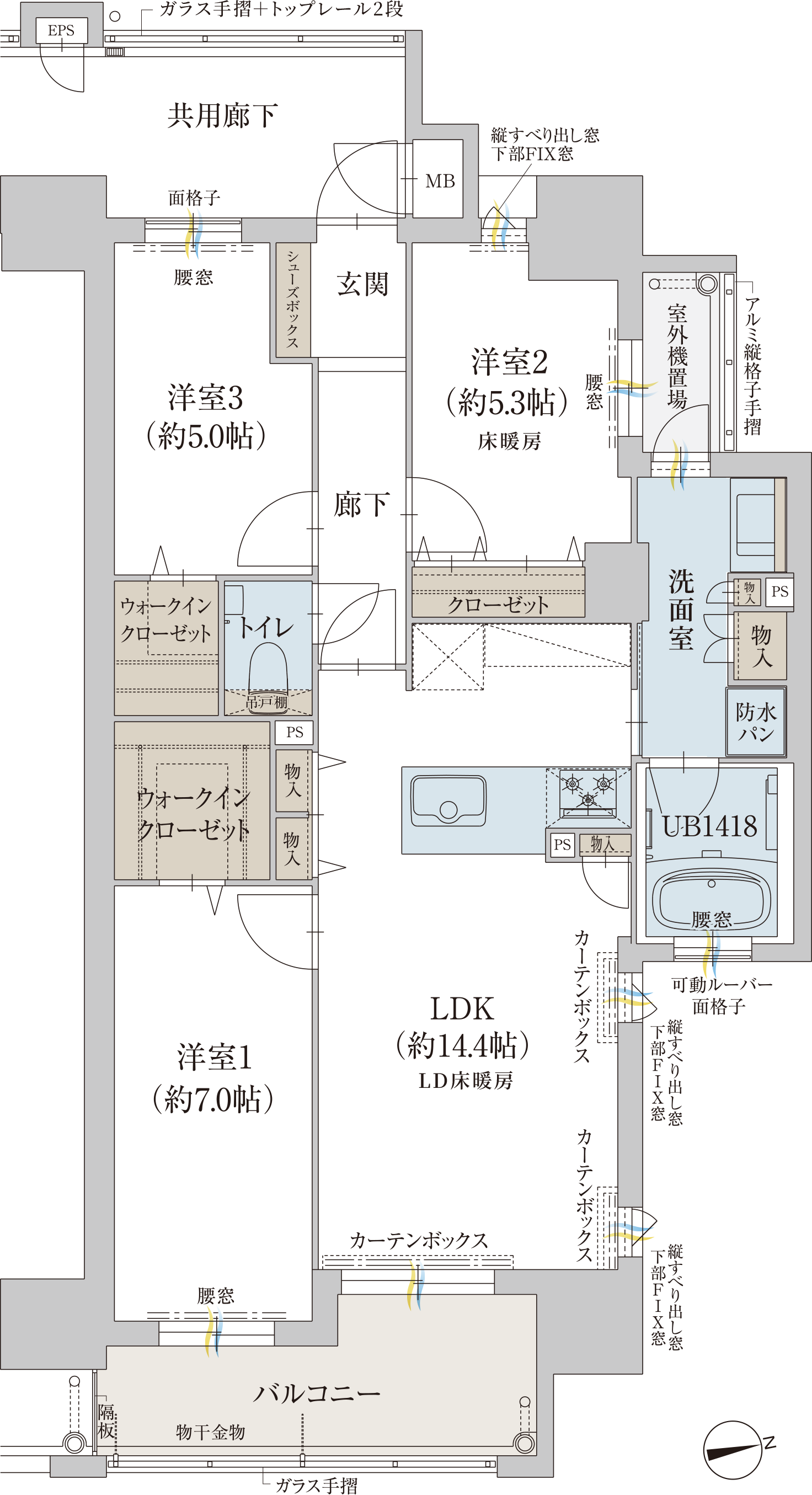 バルコニー面積 / 7.74m²(2.34坪) 室外機置場面積 / 2.10m²(0.63坪) 合計面積 / 85.64m²(25.89坪) バルコニー面積 / 7.74m²(2.34坪) 室外機置場面積 / 2.10m²(0.63坪) 合計面積 / 85.64m²(25.89坪)