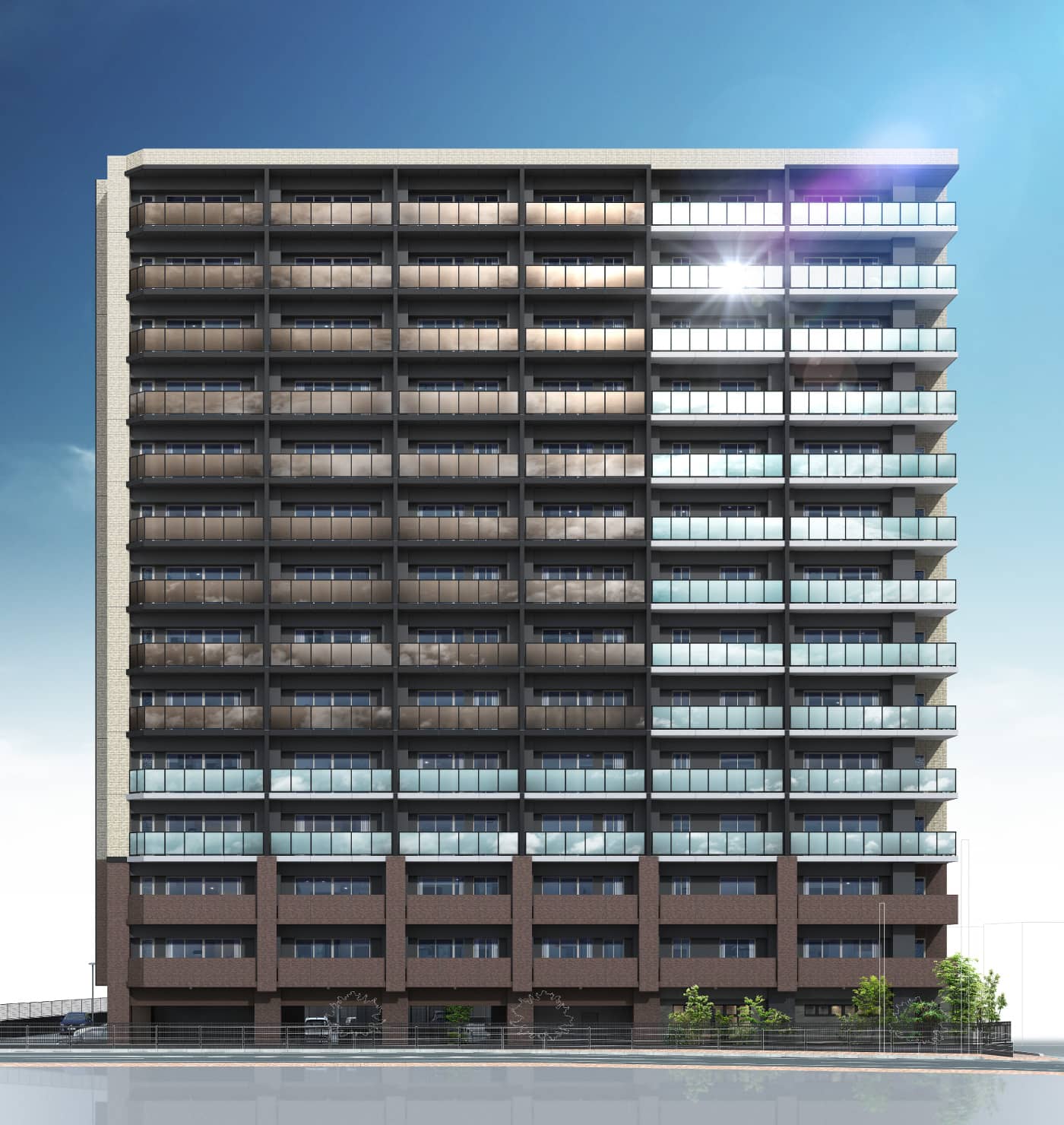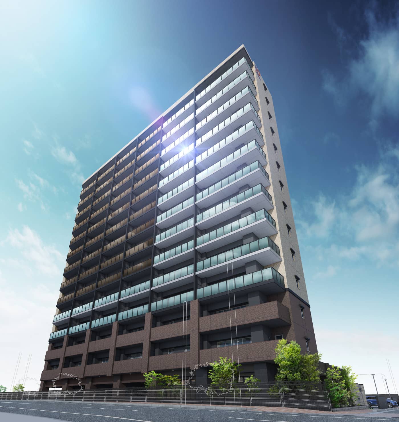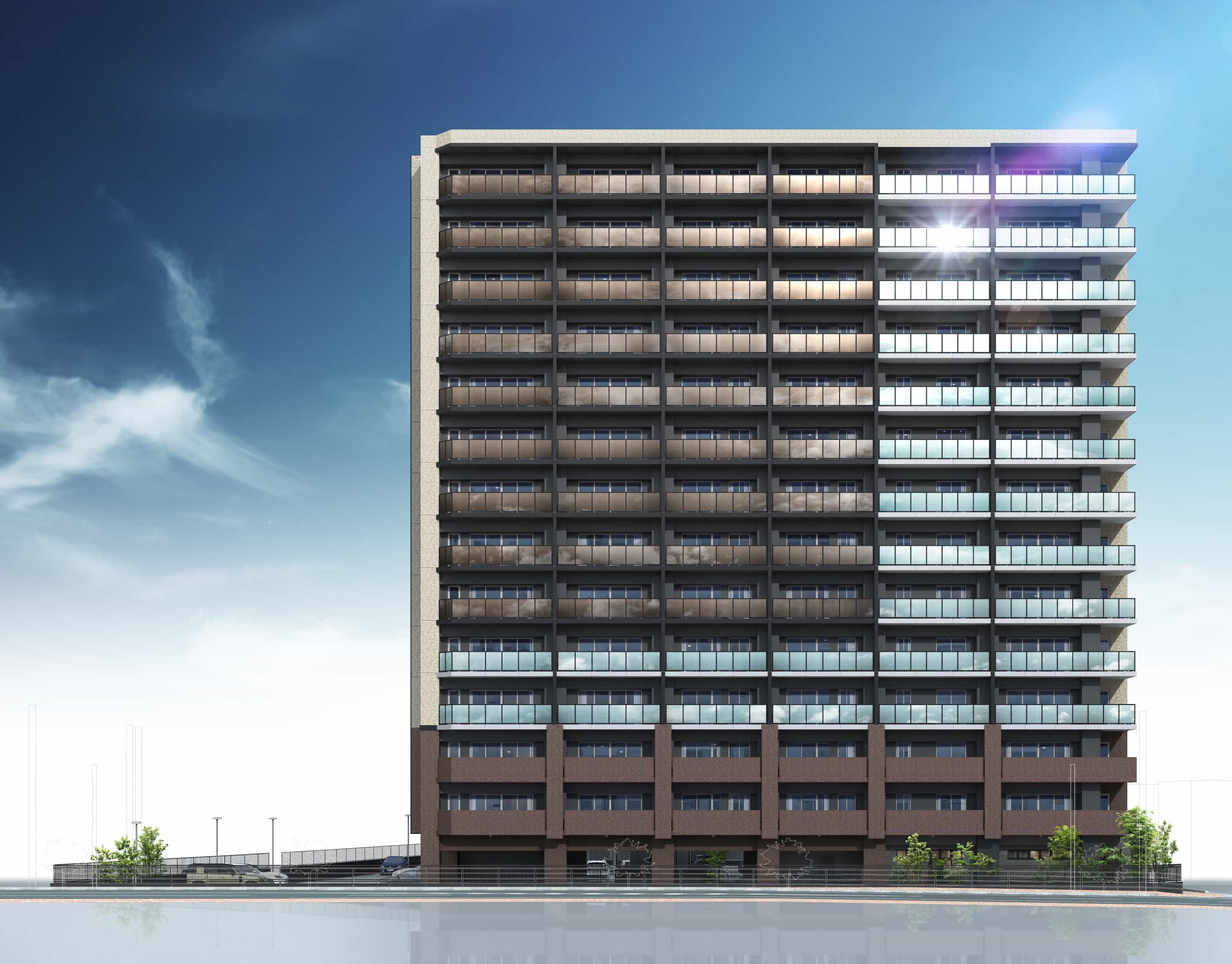 ※掲載の完成予想図は2025年8月に現地周辺を撮影したものに一部加工を施し、設計段階の図面を基に描き起こしたもので、実際とは多少異なる場合があります。