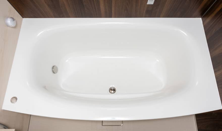 - 浴槽にはボタンを軽く押すだけで排水できる水栓を採用。無理に腰をかがめることなく貯排水できます。
