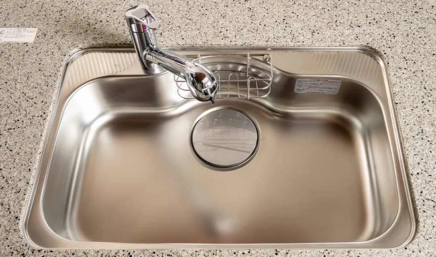- 大きめの鍋もラクに洗える大型シンク。食器や水ハネの音を抑える制振シンクになっています。