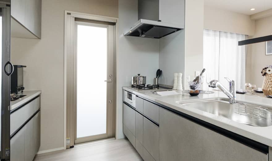 - キッチンからバルコニーへの出入りが可能な勝手口を設置。家事動線を考えた仕様です。※Aタイプ