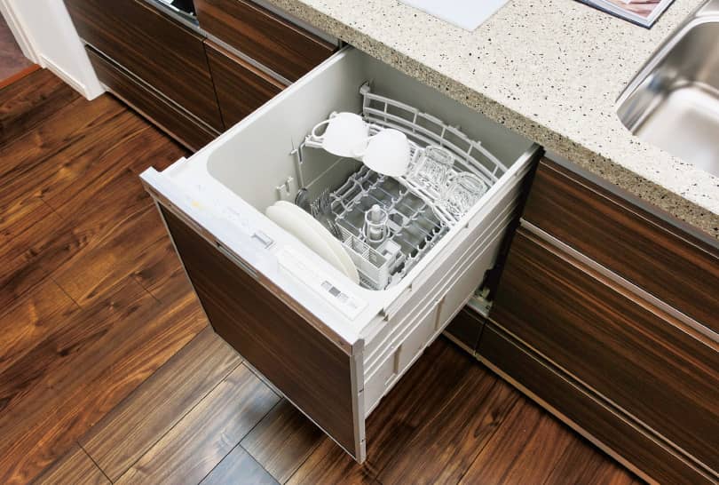 - ビルトインタイプの食器洗浄乾燥機。日々の食事のお片付けが楽になります。
