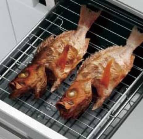 - 裏返す手間いらずな両面焼きグリル。グリル網にはしっかりと高さがあるので、落ちた脂に食材が浸からず美味しく焼き上がります。