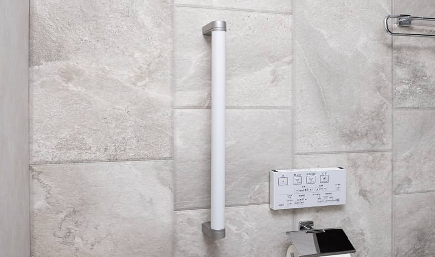 - トイレでの立ち座りの動きをサポートし、つまずきや転倒といった危険を防ぐのに役立つ手すりを設置。