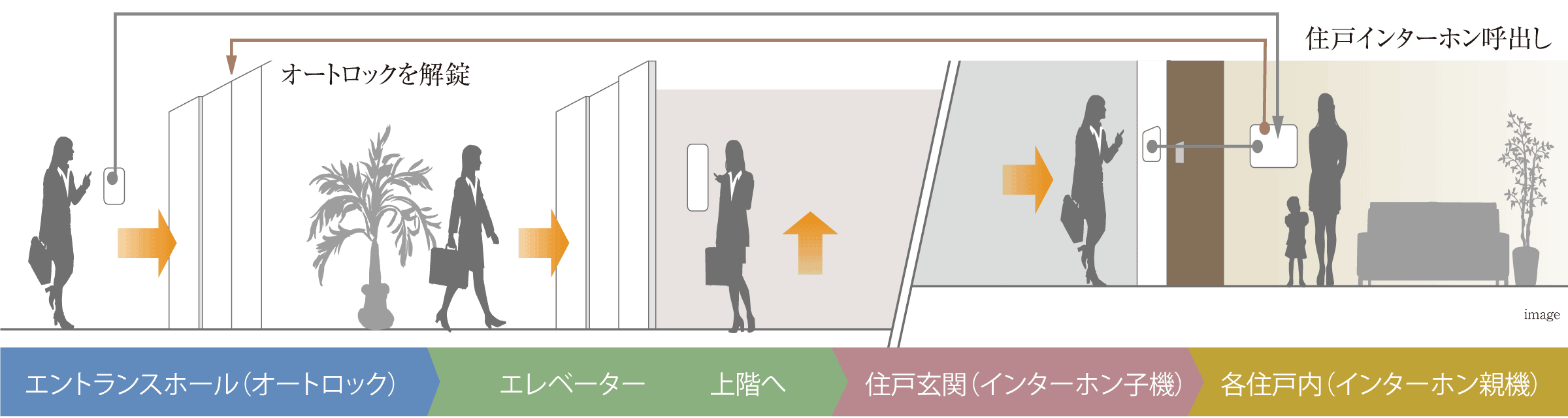 認証範囲内であればリーダに近づく手間がなく、エントランスホール内へ入ることができます。荷物等で鍵が出しにくい時にとても便利なシステムです。