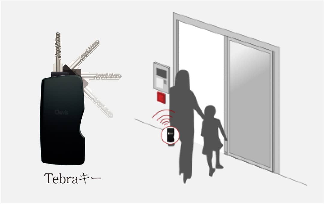 「Tebraキー」をカバンやポケットに入れたままハンズフリーで解錠でき、お子様連れやお荷物で両手が塞がっているときも便利です。