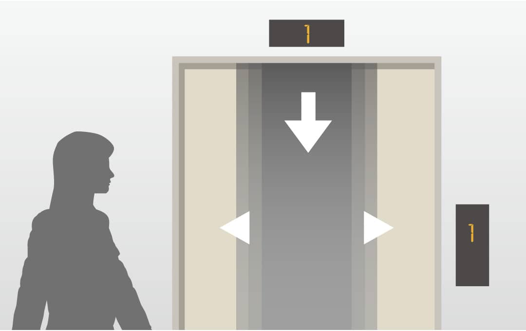 地震発生時、センサーにて揺れを感知し、エレベーターは最寄階に着床して扉を開きます。