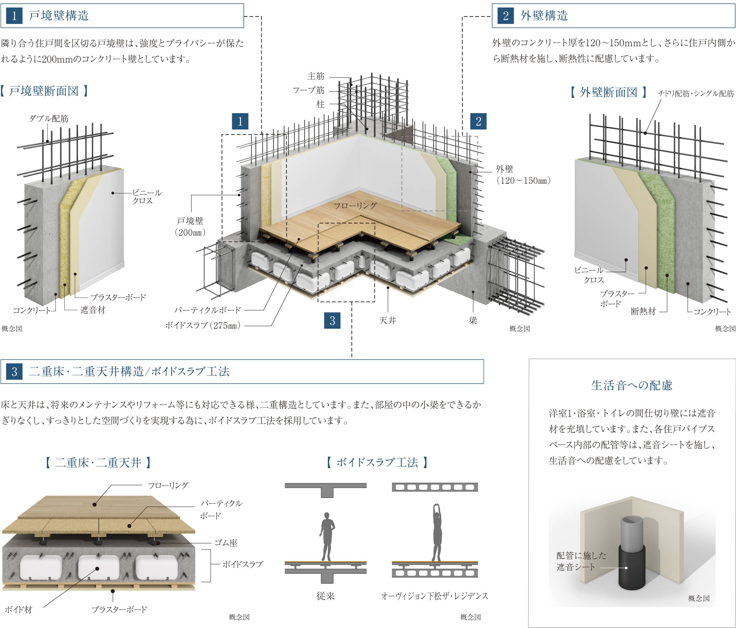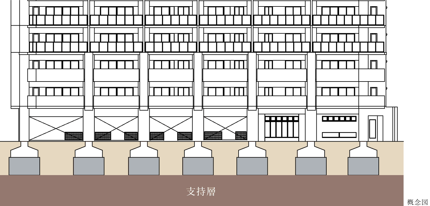 また、「オーヴィジョン下松ザ・レジデンス」では、地表から比較的近い位置に支持地盤がある場合に用いられる直接基礎工法を採用しております。