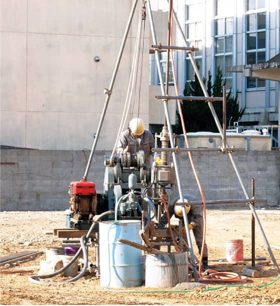 オーヴィジョンマンションでは、標準貫入試験などの地盤調査を事前に行い、建物に対し最も適切な基礎方式を選定しています。