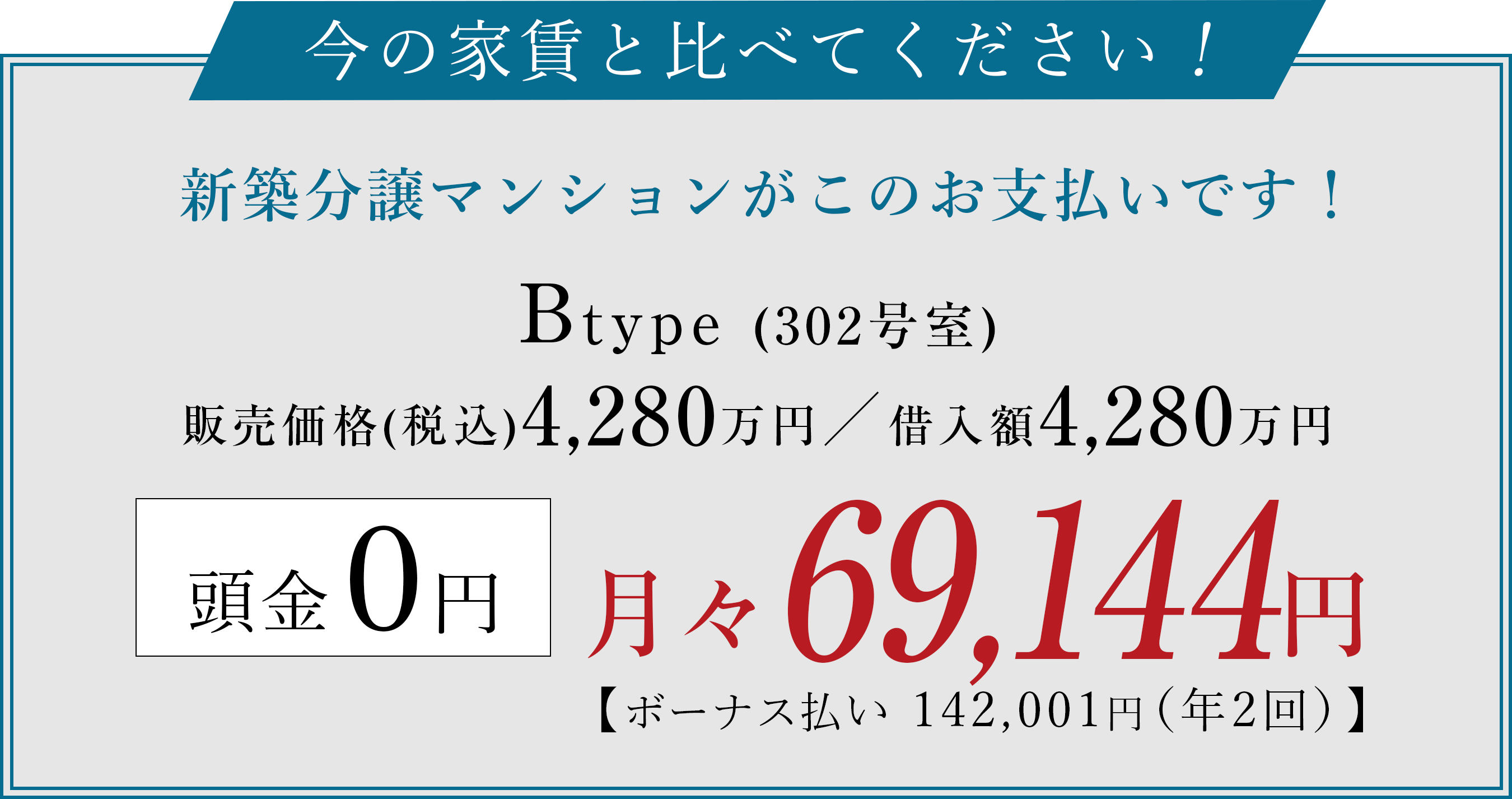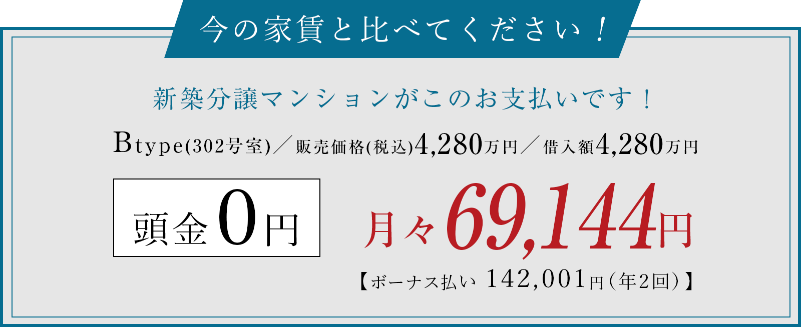 ※お支払い例には、管理費、修繕積立金、駐車場使用料は含まれておりません。