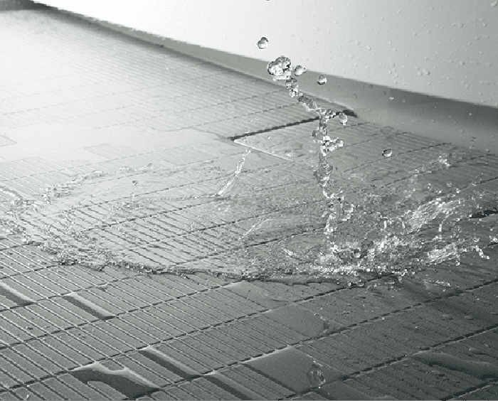 - 滑らかな表面で汚れをはじく「有機ガラス系新素材」。水や汚れを防ぐ「はっ水・はつ油成分」が素材に練り込まれています。また、隙間や段差が少なく、お手入れも簡単です。
