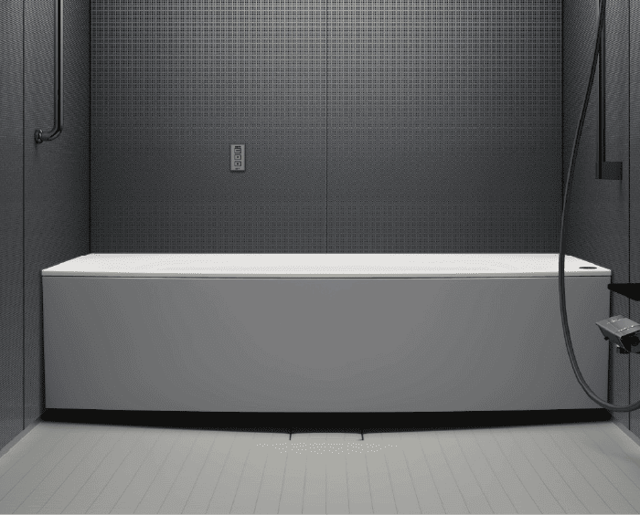 - 点・線・面の光を受け止める壁と天井が、陰影の奥行きを描写。壁そのものが光を操り、入浴のひとときを静かに美しく演出します。