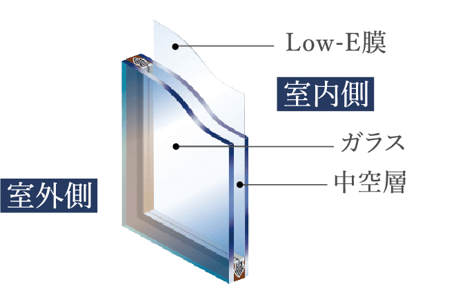 - 室内側に特殊金膜のLow-E膜を施した高断熱タイプの「Low-E複層ガラス」を採用。結露の抑制や紫外線の軽減にも効果があります。