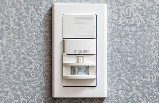 - 人を感知して自動的に点灯・消灯するオートライトを玄関に設置。消し忘れを防ぎ、無駄な電力の消費を抑えます。