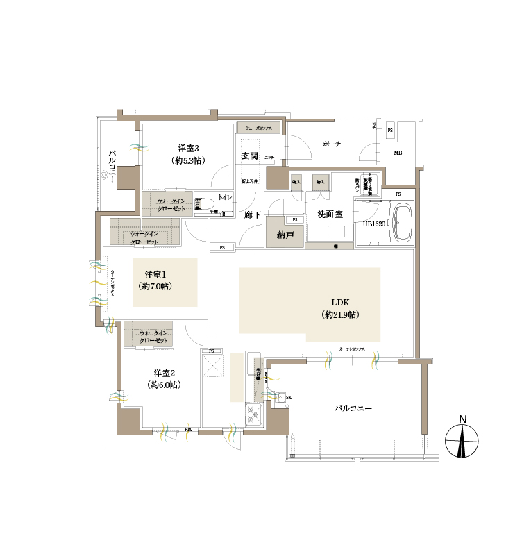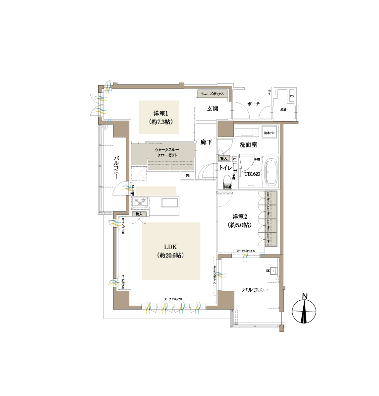 ※掲載の完成予想図は、設計段階の図面を基に描き起こしたもので、実際とは多少異なる場合があります。また、完成予想図で表現されている植栽は竣工時から初期の生育期間を経た状態のものを想定して描いております。竣工時は植物の育成を見込んで必要な間隔をとって植えております。