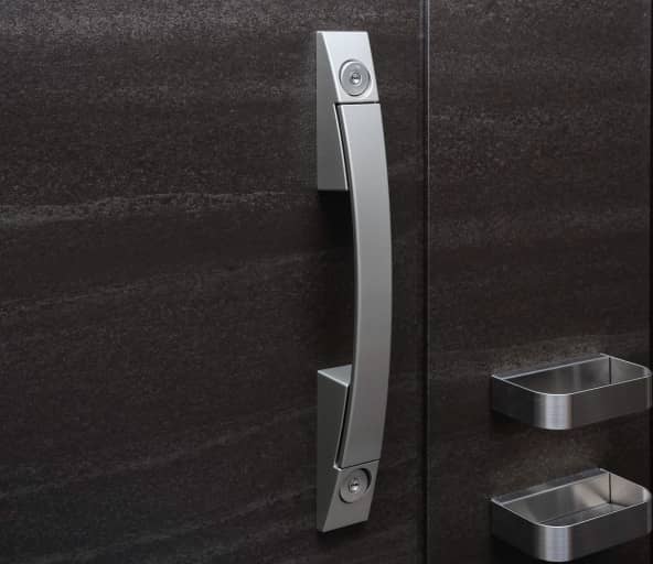 中心吊りの丁番を採用することで扉を開閉する際に指が入る隙間を無くし、扉で指をはさむ事故を防ぎます。