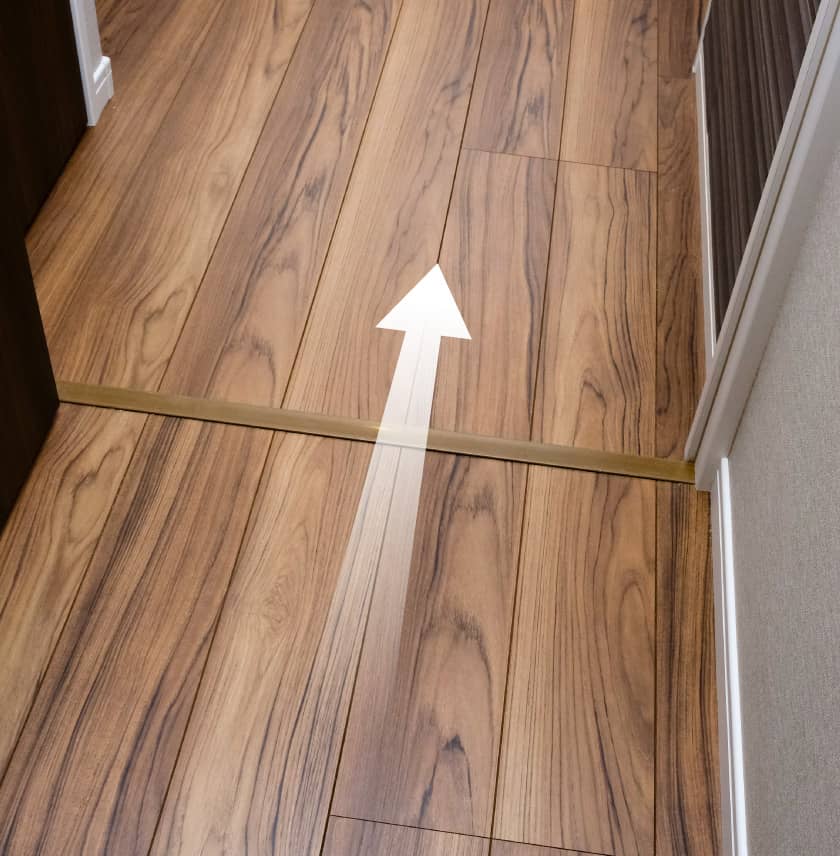 住戸内でのつまずき事故を防ぐために、居室間の床は段差をなくしたフラットフロアとしました。※建具の下には床見切りが入ります。