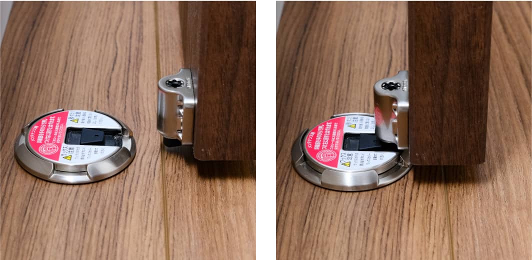 扉を開けた状態で固定ができる、ドアストッパーです。※一部の扉を除く