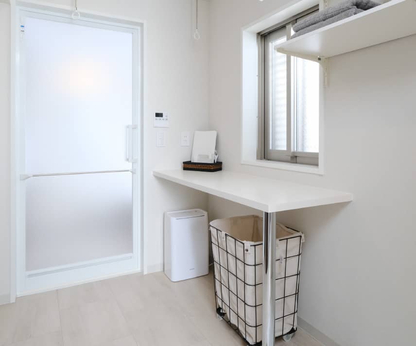 洗面室には、アイロン掛けや洗濯作業のスペースとして利用できるカウンターを設けています。※A・Bタイプ