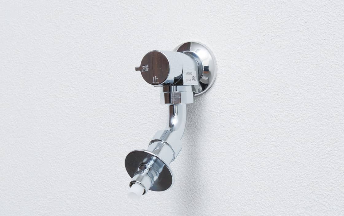 万一通水中にホースが外れても瞬時に止水する緊急止水機能付の洗濯用水栓です。