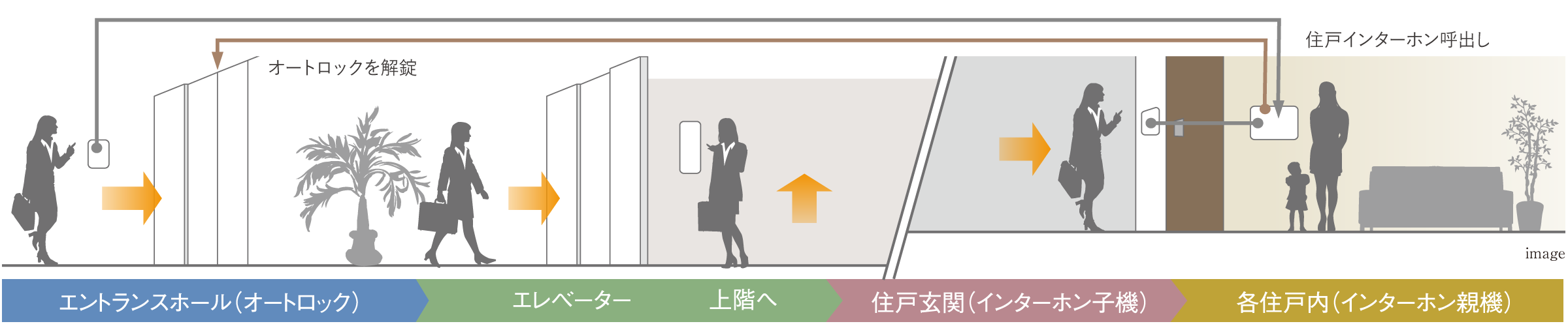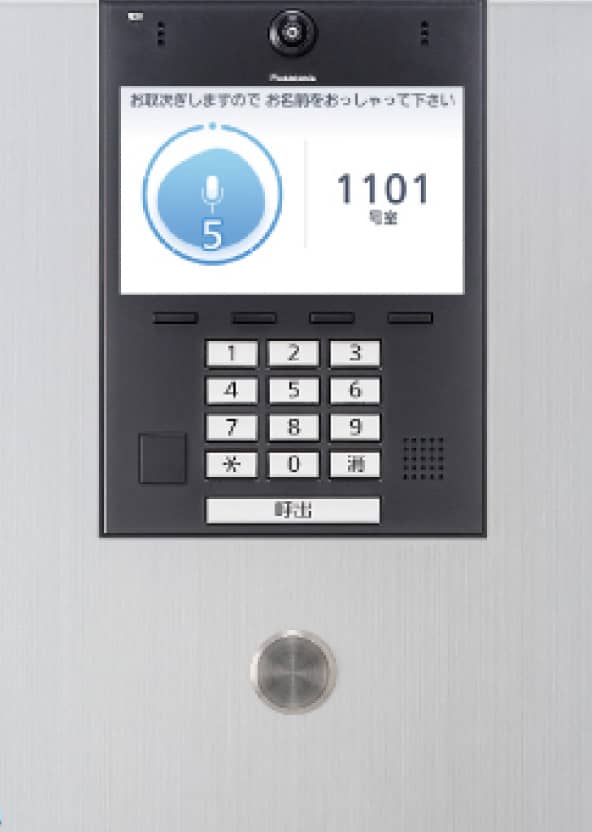 ロビーインターホンが居住者にかわって来客を対応します。来訪者の用件が繰り返し流れ、聞き逃す心配がなく、居住者が対応しなくても用件がわかり安心です。