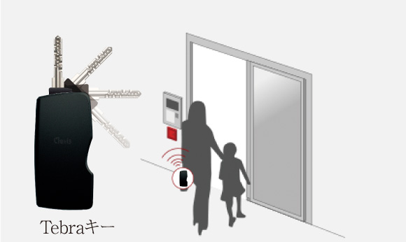 「Tebraキー」をカバンやポケットに入れたままハンズフリーで解錠でき、お子様連れやお荷物で両手が塞がっているときも便利です。
