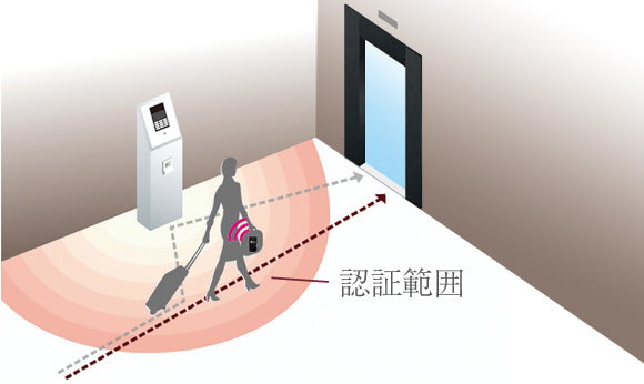 認証範囲内であれば鍵を取り出す手間がなく、エントランスホール内へ入ることができます。車イスをご利用の方も使いやすいシステムです。