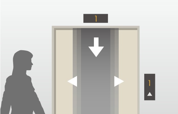 地震発生時、センサーにて揺れを感知し、エレベーターは最寄階に着床して扉を開きます。