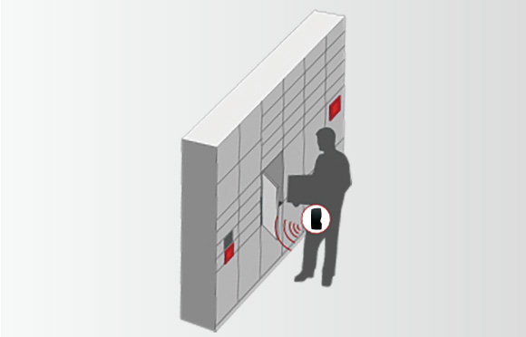 「Tebraキー」を身につけてリーダに手をかざすか、ノンタッチキーをリーダにかざすと扉が自動的に開くので、荷物のスムーズな受け取りが可能です。