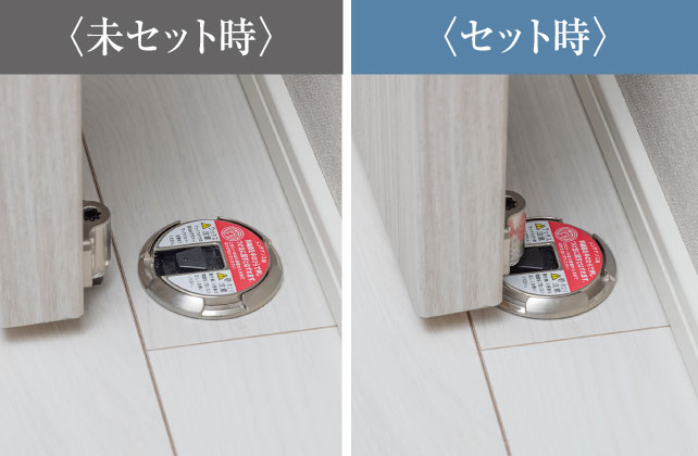 扉を開けた状態で固定ができるドアストッパーです。- ※一部の扉を除く。