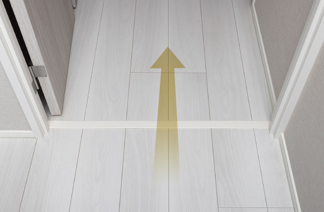 住戸内でのつまずき事故を防ぐために、居室間の床は段差をなくしたフラットフロアとしました。- ※建具の下には床見切りが入ります。