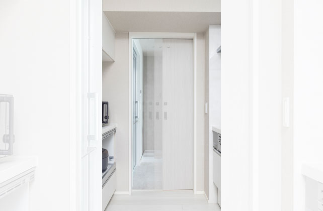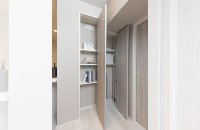 廊下やLDKなどには、日用品などが収納できる物入を設けました。- ※タイプにより形状が異なります。