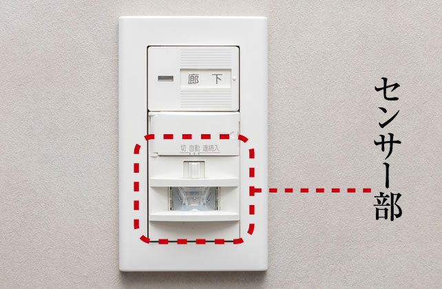 玄関内には人を感知して、自動的に点灯・消灯するオートライトを設置しました。 -