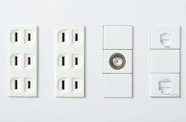 テレビ・電話の各アウトレットと電源差込口を組み合わせたコンセントをLDKに設置しました。また、BS・110°CS アンテナに対応しています。- ※有料放送にはお客様による別途個別契約が必要になります。