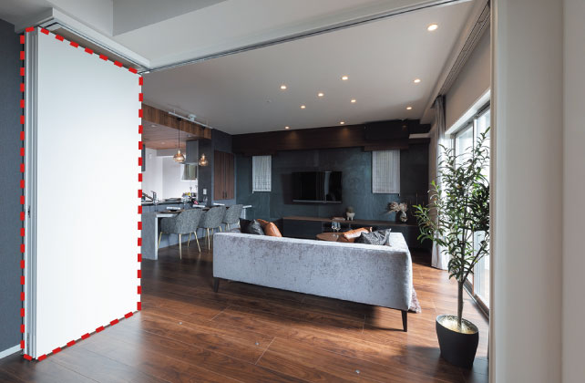 リビング横の洋室に、簡単に開閉できる可動間仕切りを採用したプランをご用意しました。- ※A・B・Cタイプ