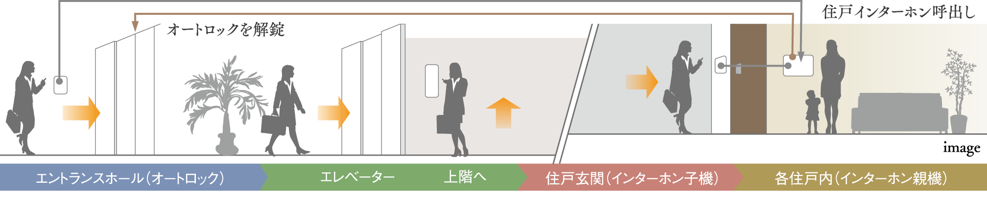 1階のオートロックが解錠すると、自動的にエレベーターが1階へ到着し、お客様をお出迎えします。