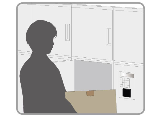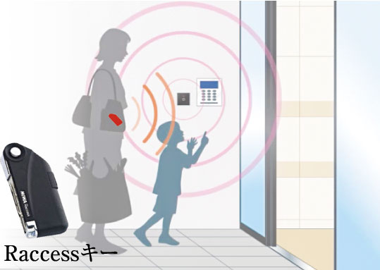 ハンズフリーRaccessキーを身につけて、リーダーに手をかざすと扉が自動的に開くので、スムーズな受け取りが可能です。