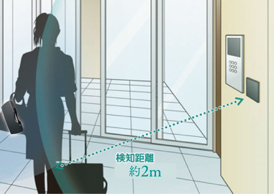 鍵をカバンやポケットに入れたまま、ハンズフリーでエントランス・サブエントランスのドアを解錠できます。