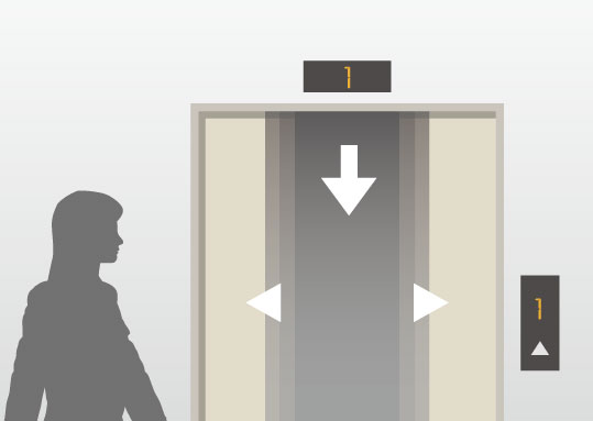 地震発生時、センサーにて揺れを感知し、エレベーターは最寄階に着床して扉を開きます。