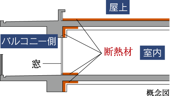 屋上は外側、外壁は内側から断熱材を施すことで、昼夜の温度差を小さくして