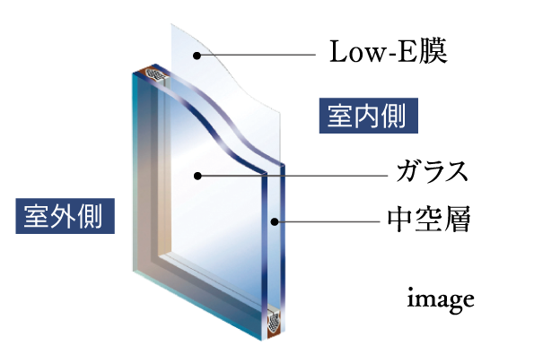 室内側に特殊金膜のLow-E膜を施した高断熱タイプの「Low-E複層ガラス」を採用。結露の抑制や紫外線の軽減にも効果があります。