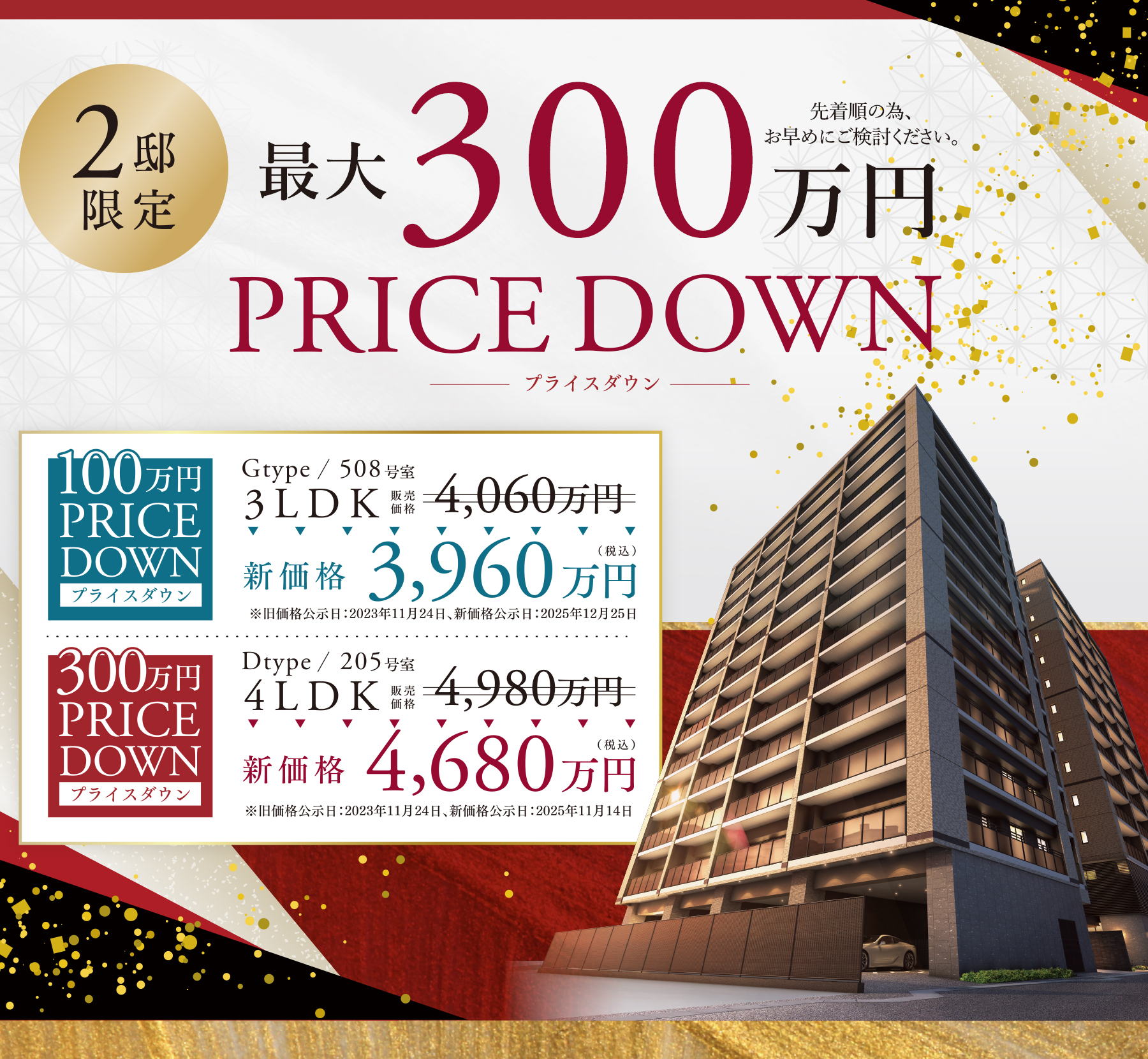 - ※特別分譲は先着順受付につき、ご希望の住戸がご成約済みの場合があります。予めご了承ください。