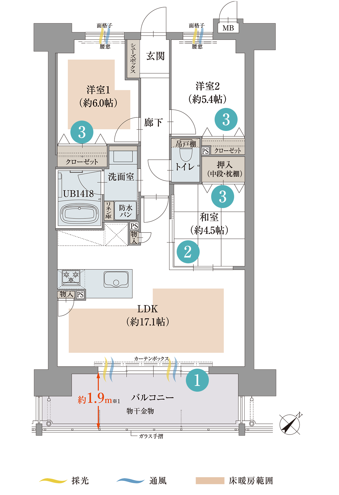 - ※階数によってバルコニー・共用廊下側の形状が一部異なります。